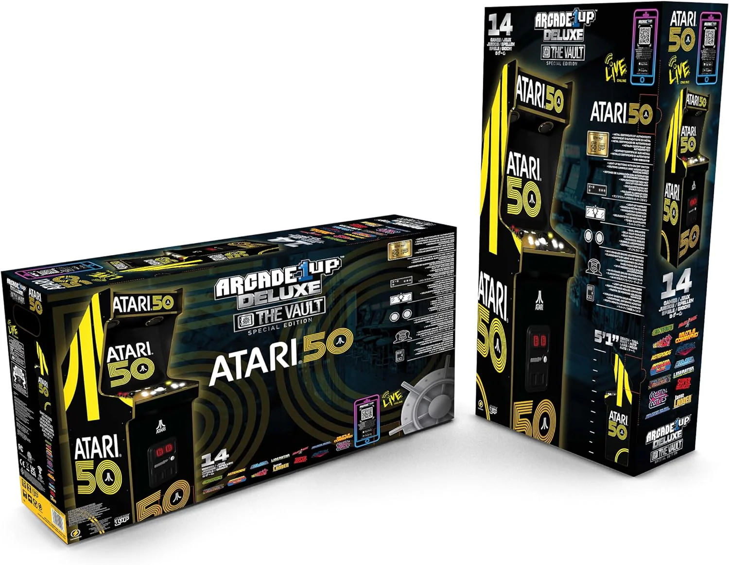 • Exclusive 50th Anniversary Artwork: The cabinet features unique artwork created to celebrate Atari’s 50th anniversary, showcasing the rich history and legacy of Atari games. The design is both nostalgic and eye-catching, making it a perfect addition to any retro gaming collection.