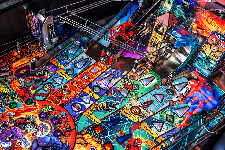 - Interactive Toys and Mechanisms: The Venom Premium Pinball Machine includes exclusive interactive toys and mechanisms that elevate the gameplay experience. Key features include a motorized rotating Carnage figure, a moving ramp, and a symbiote containment chamber, all adding depth and excitement to the game.