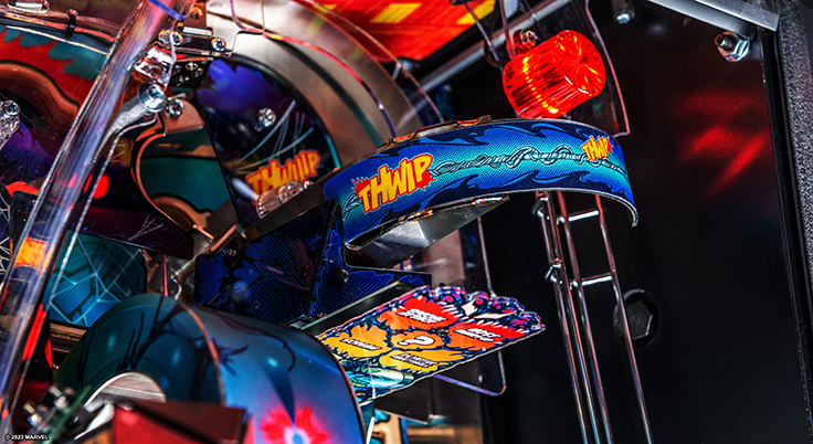 - Enhanced Lighting and Sound Effects: Feel the intensity of Venom’s battles with dynamic RGB LED lighting effects and authentic sound effects that respond to the action on the playfield. Enjoy an immersive soundtrack featuring music and sound bites from the Marvel universe, enhancing the overall experience.